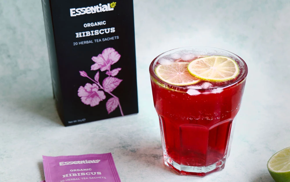 Check out this refreshing non-alcholic hibiscus refresher recipe, using our Essential Hibiscus Herbal Tea Infusion, fresh lime and fizzy water, tonic or lemonade depending on your sweet tooth.